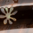 Large recycled acetate clip with flower and shell inlays.
