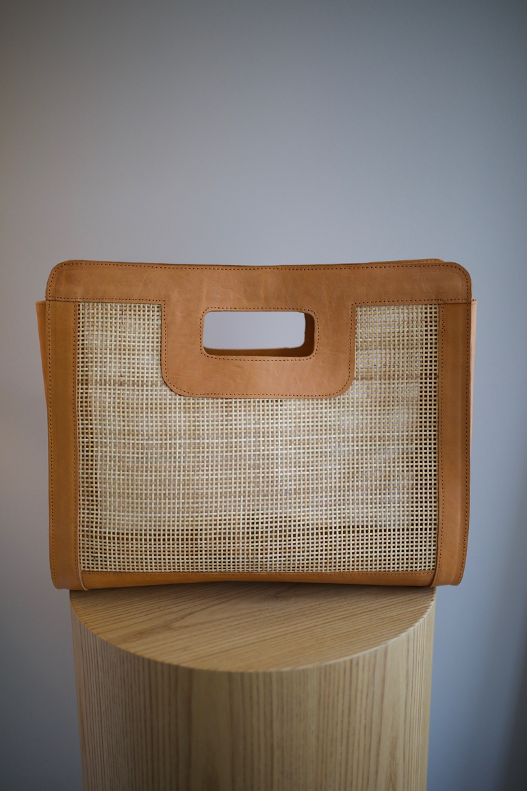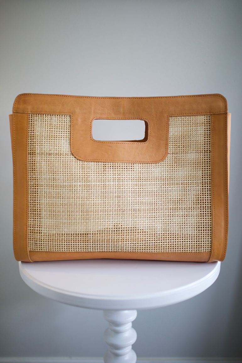 Leather and Rattan purse, handmade in Indonesia